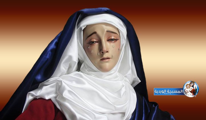 تتلى مسبحة دموع مريم العذراء بواسطة مسبحة الوردية مع اسرار الحزن.